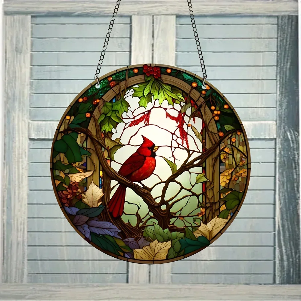 1pc Catholic Cardinal Suncatcher Stained Glass Window Hanging For Office Room And Kitchen Decor Garden Decorations For Friends