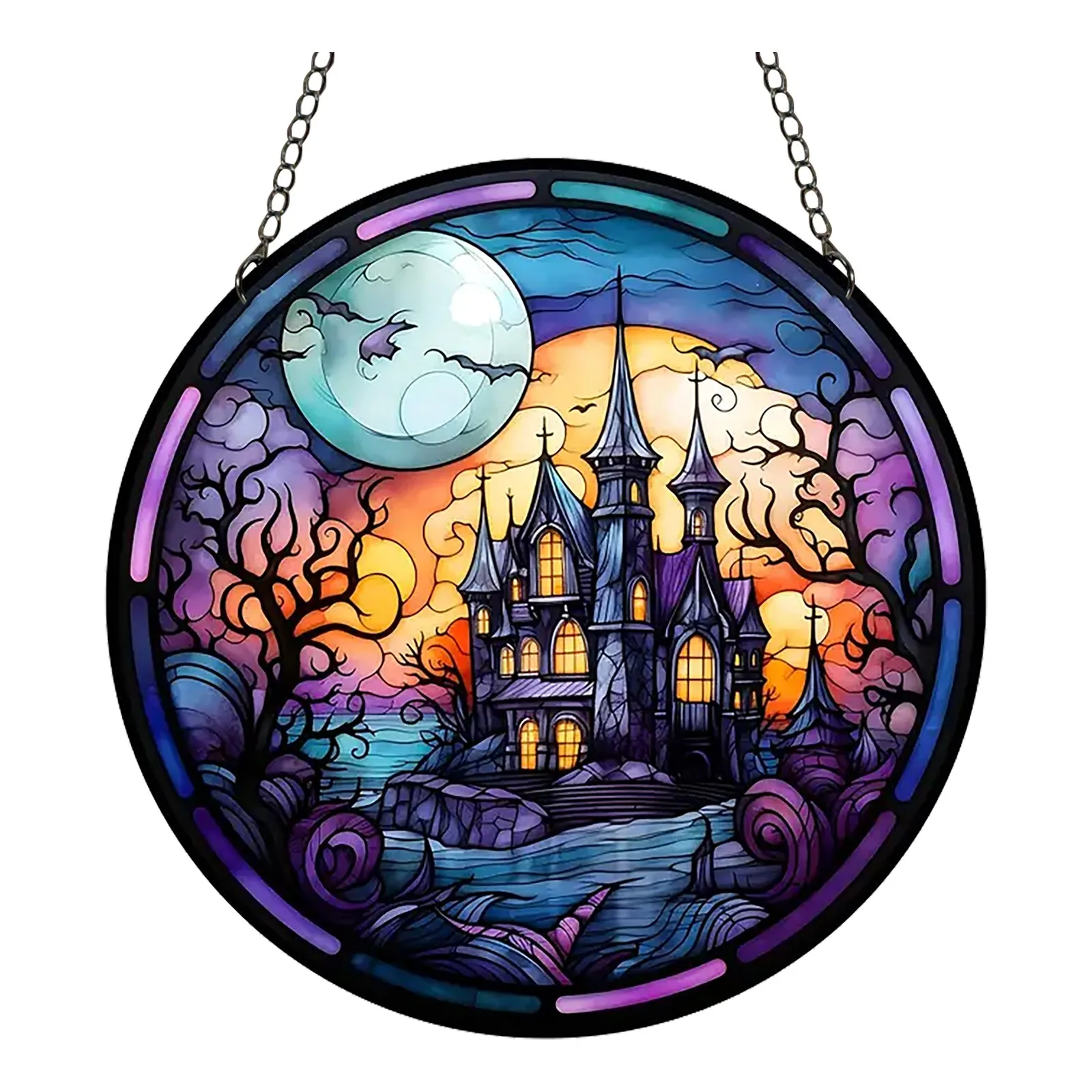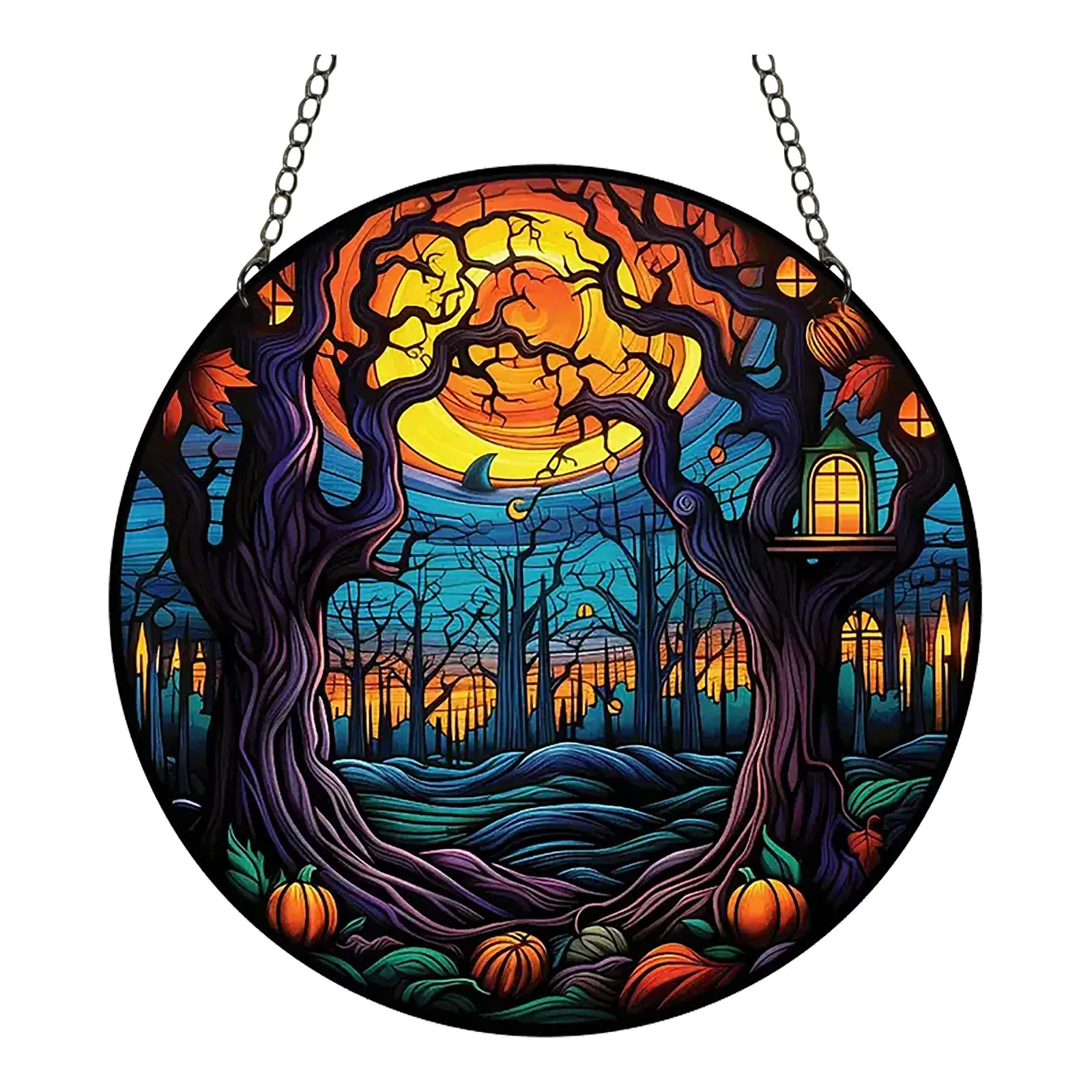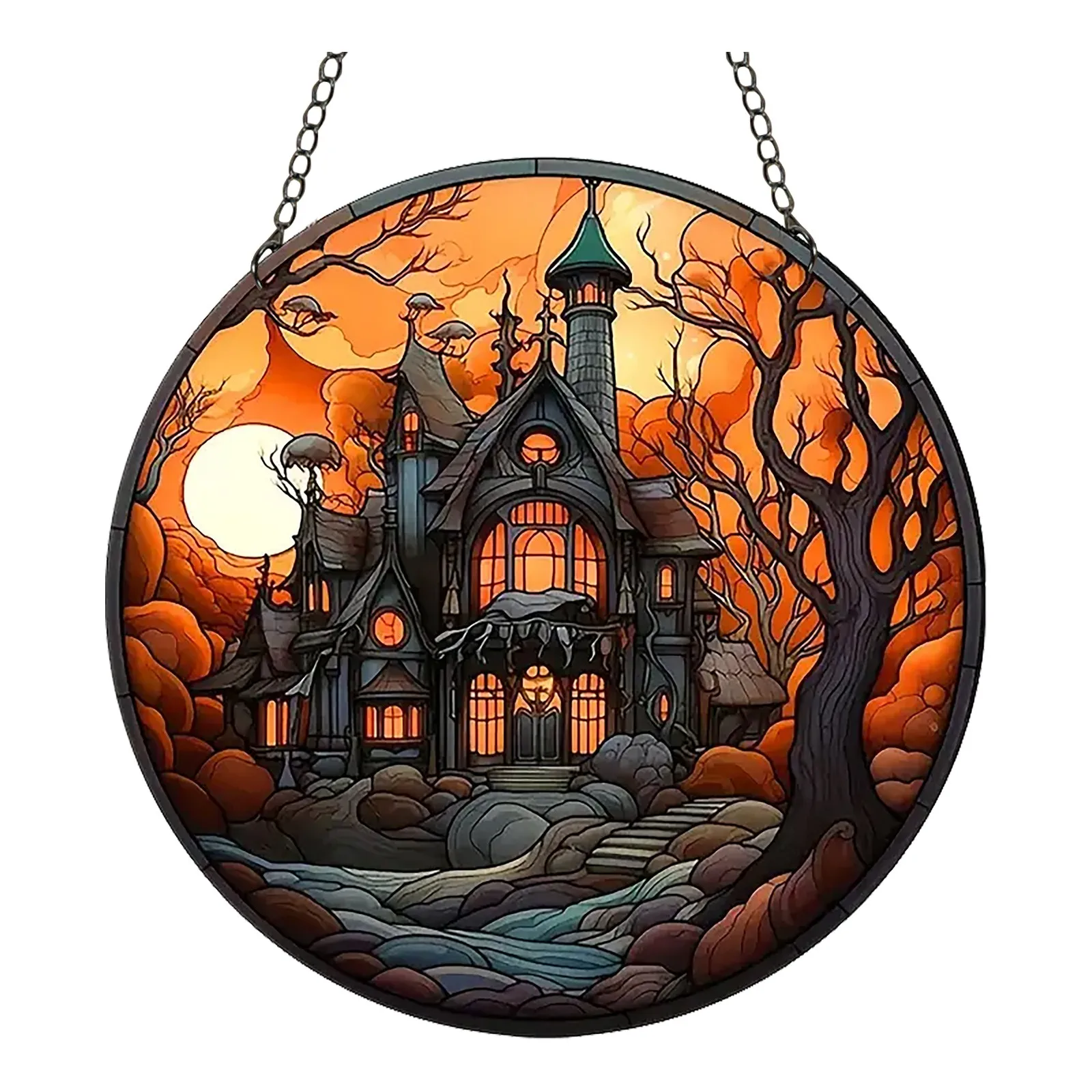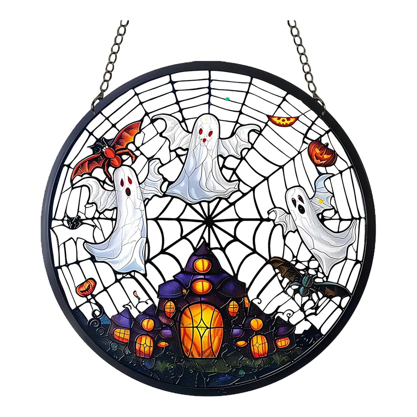 2024 New 2d Holiday Pendants Halloween Acrylic Stained Glass Window Decorations Garden Decorations Home Porch Decorations.