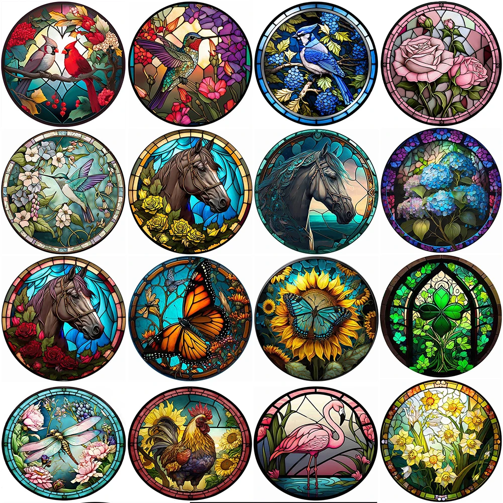 35*35CM 5D DIY Stained Glass Animal Full Round Drill Diamond Painting Kit Home Decoration Art Craft Mosaic Painting