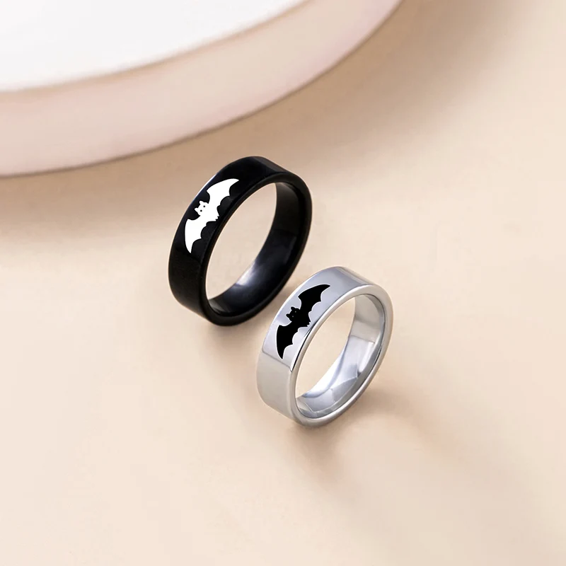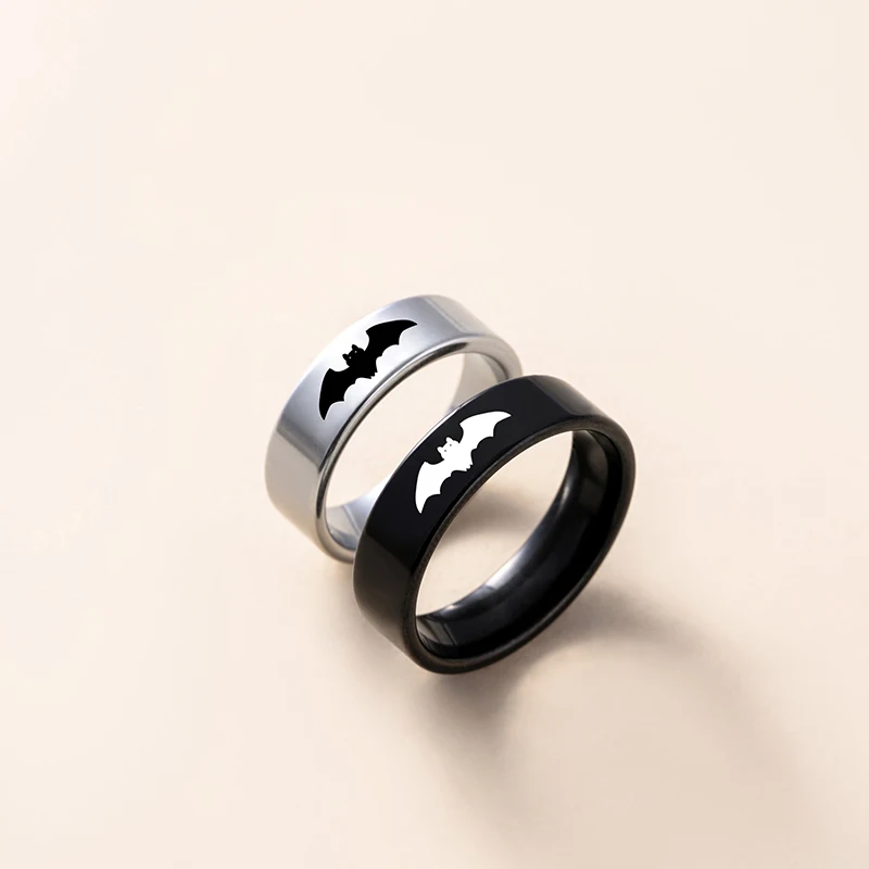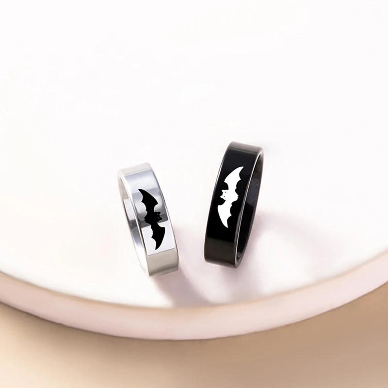 Yin Yang Bat Stainless Steel Couple Rings Punk Black Silver Color Vampire Ring For Women Men Halloween Jewelry