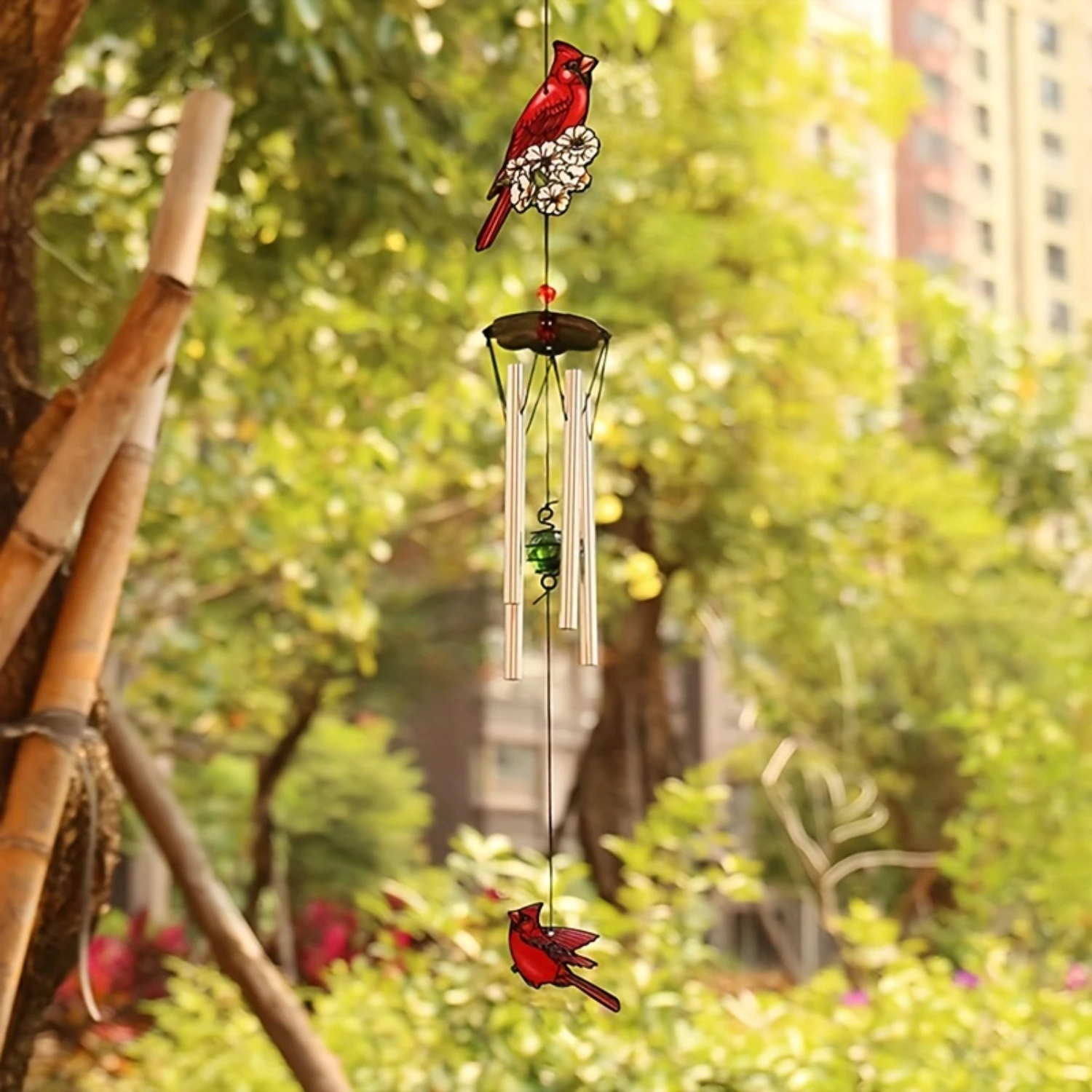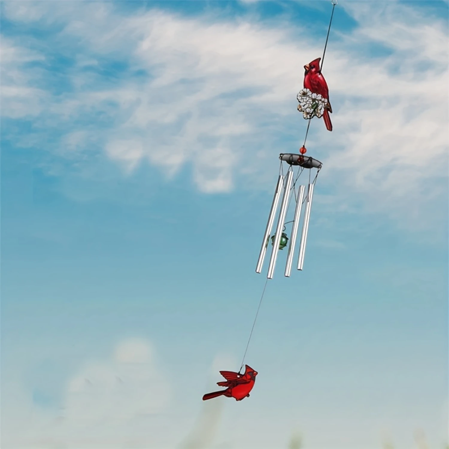 4. Transport yourself to a state of tranquility with our Cardinal Wind Chimes Hanging, designed to enhance relaxation and peace in your garden without the need for any batteries or electricity.