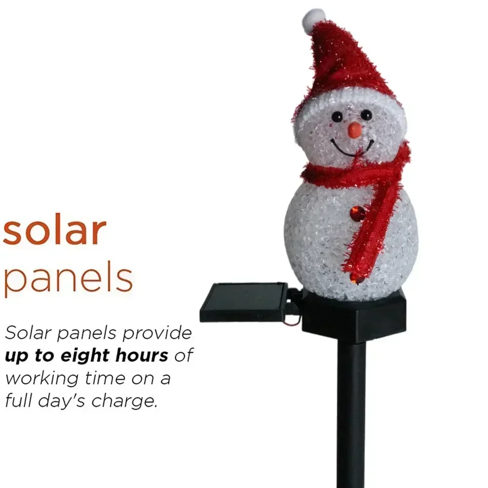 AUTO ON/OFF ENERGY SAVING & WHITE DECOR: The automatic solar powered light has a solar panel that absorbs sun light during the day to convert sunlight into electricity to recharge the AA Ni-MH battery (included). Solar power lights automatically turn on at night and turn off at dawn which enables led pathway light conserves battery life for when it’s needed most. The pattern of this solar Christmas snowman light is also attractive; solar light white is a perfect addition to your backyard