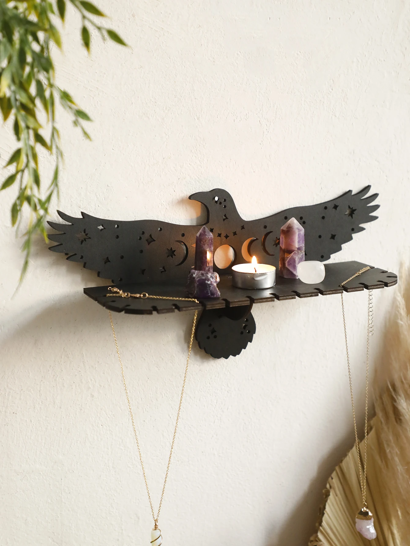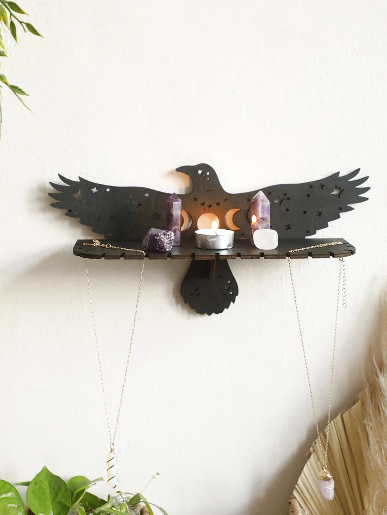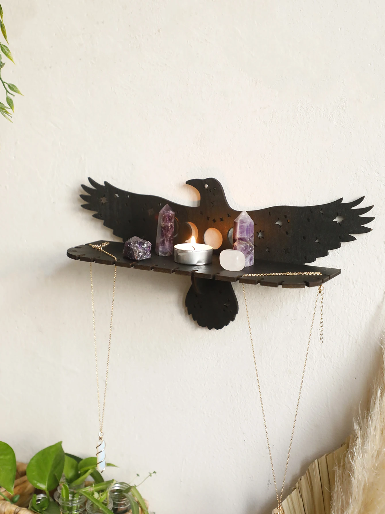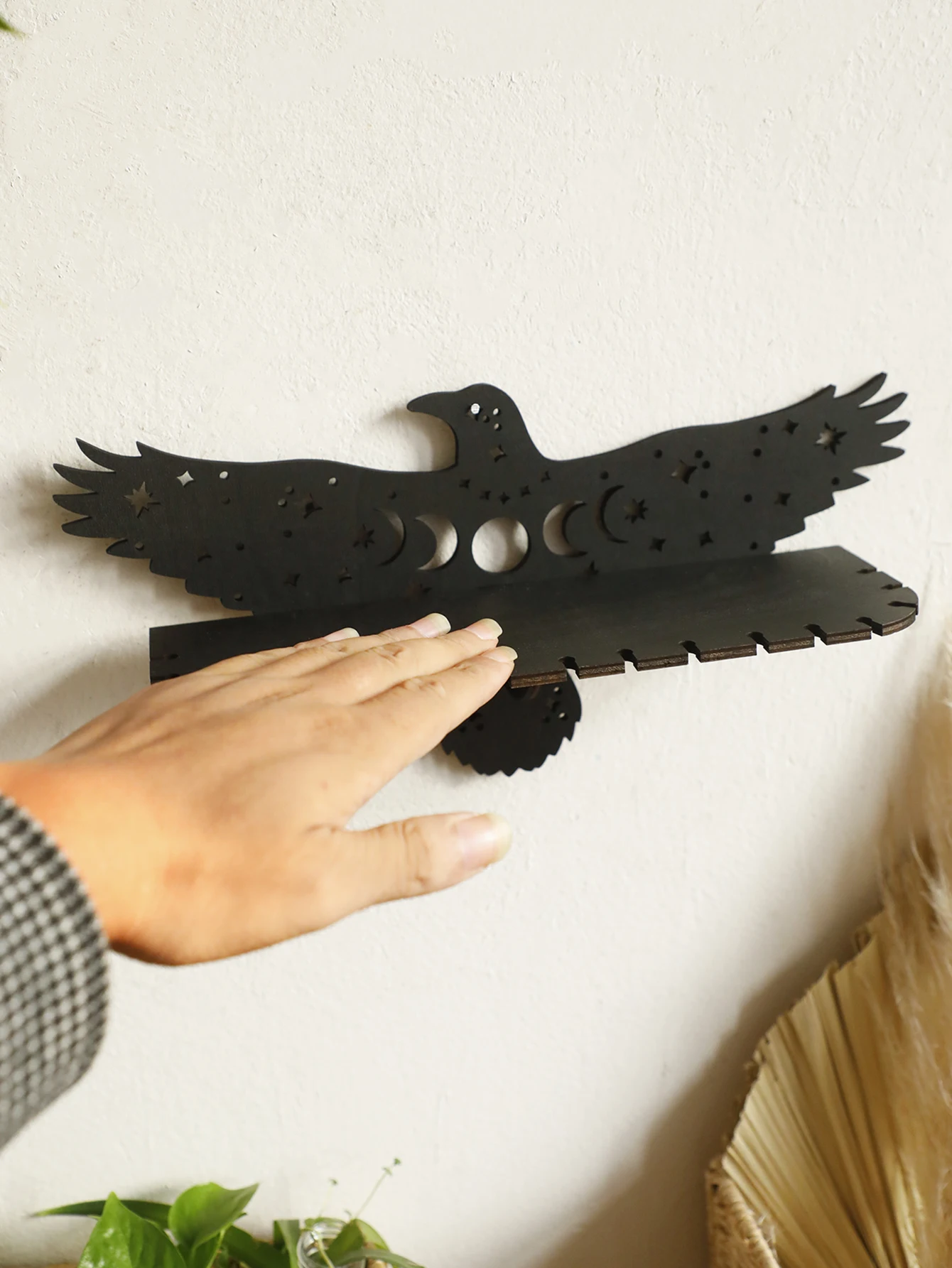 Crow Shape Floating Wall Shelf,Wooden Decorative Rack,Country Rustic Wall Shelves,Witchy Aesthetic Room Decoration,Home Deocr