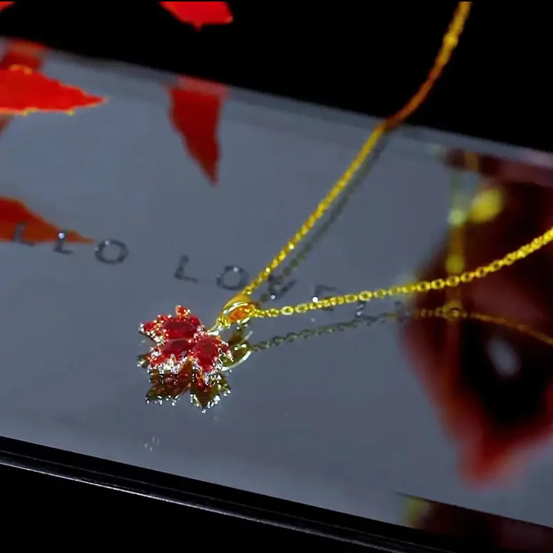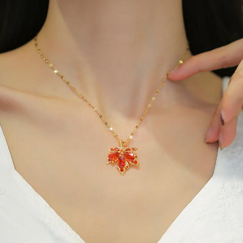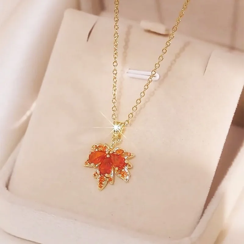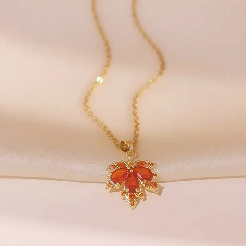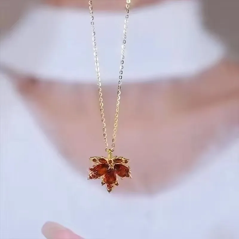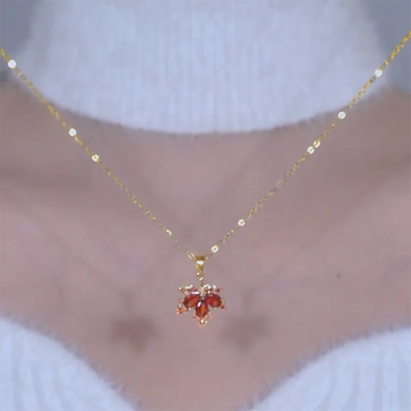 Fashion Income Red Maple Leaf Necklace Women's Fashion Retro One Night Knowing Autumn Red Maple Leaf Collar Chain Gift