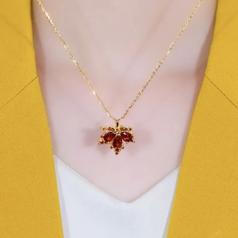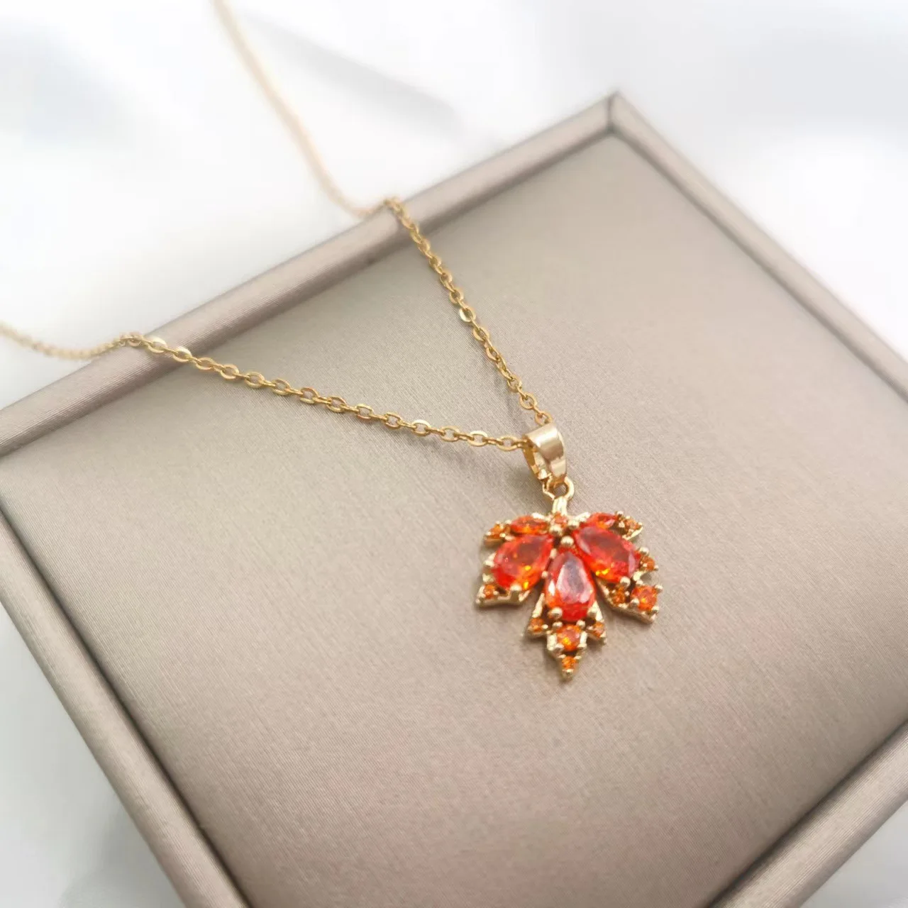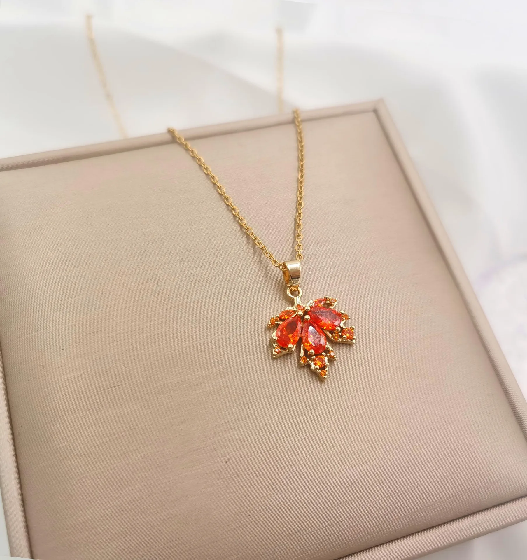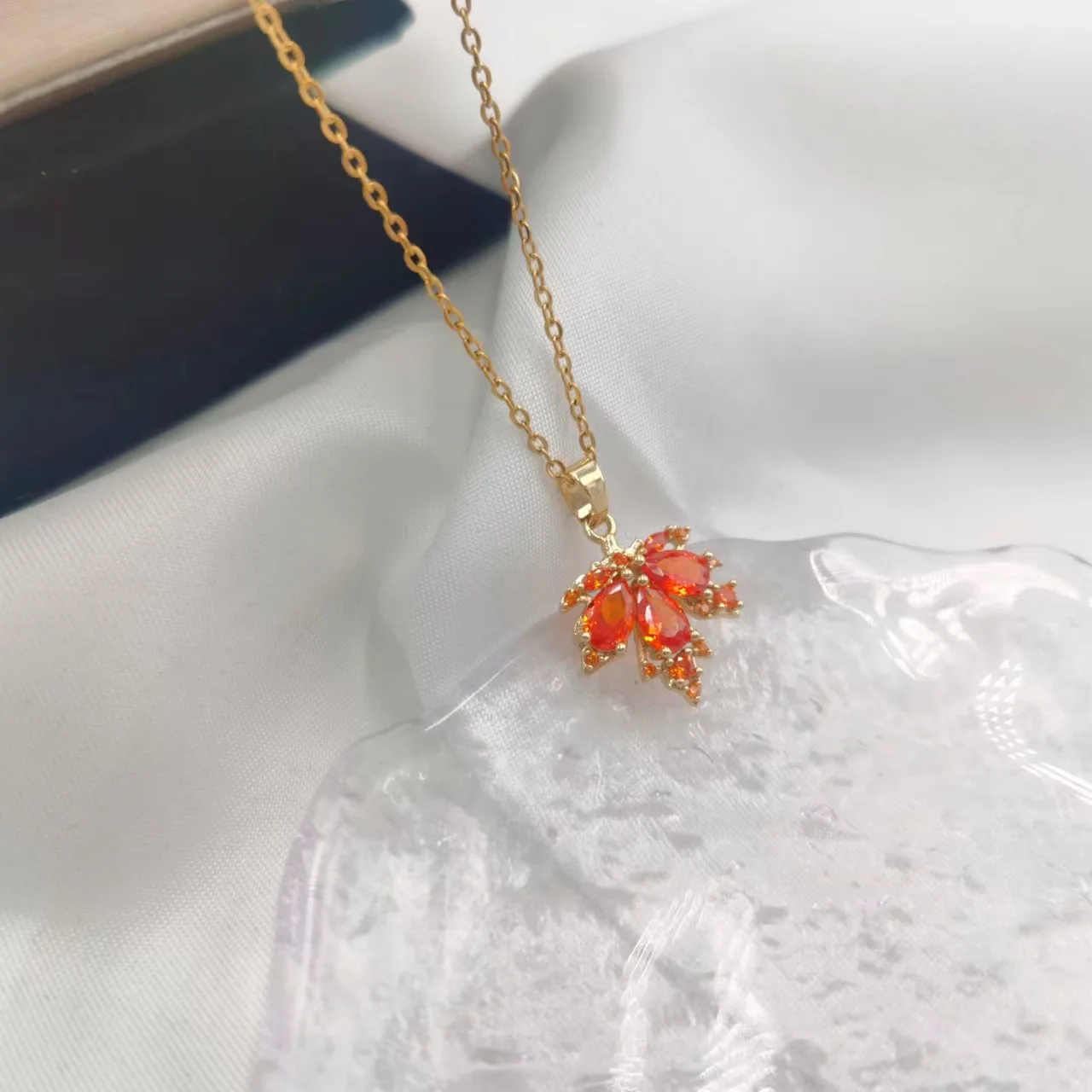 Fashion Income Red Maple Leaf Necklace Women's Fashion Retro One Night Knowing Autumn Red Maple Leaf Collar Chain Gift