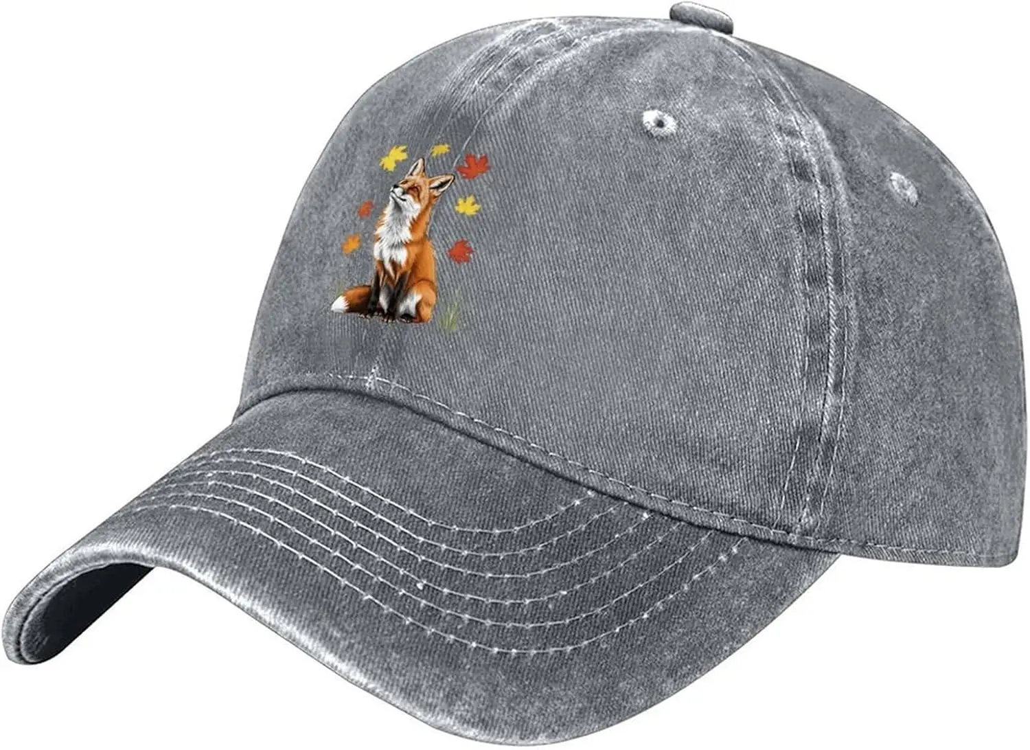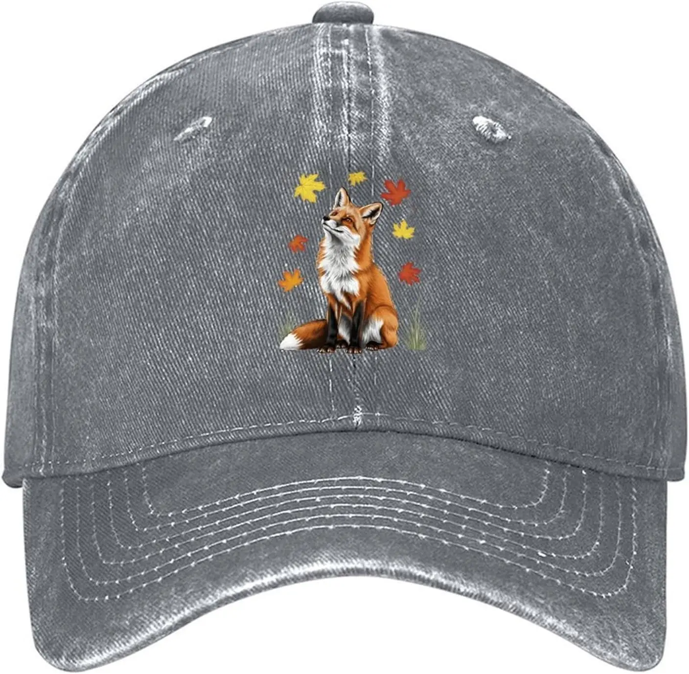 ⚡ Performance: Constructed from breathable, skin-friendly 100% cotton denim, this hat offers moderate thickness for structure without heaviness or stuffiness. The design includes hidden air vents for excellent circulation, ensuring a light and dry feel even during extended wear. The stiff, retro curved visor complements various face shapes (round, square, long), while the metal adjustment buckle allows for a snug fit (54-58cm). This robust construction means the **Fox Autumn Leaves Print Unisex Baseball Cap** maintains its shape perfectly, whether worn casually or packed in a bag, promising long-lasting comfort.