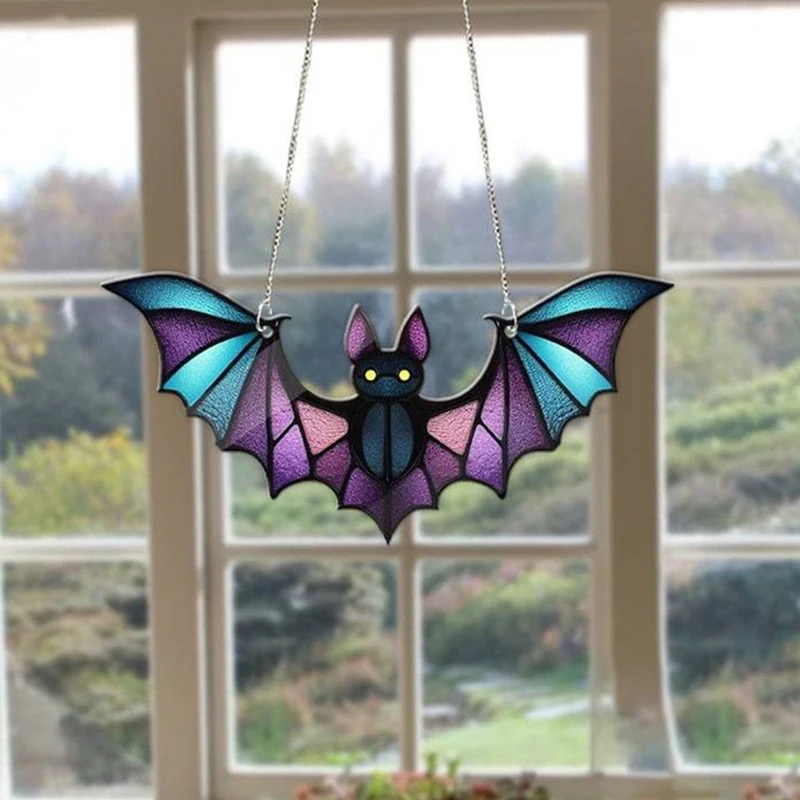 Halloween Bat Stained Glass Suncatcher Window Hanging Acrylic Wall Art Suncatcher Decoration Ghostss Festival Colorful