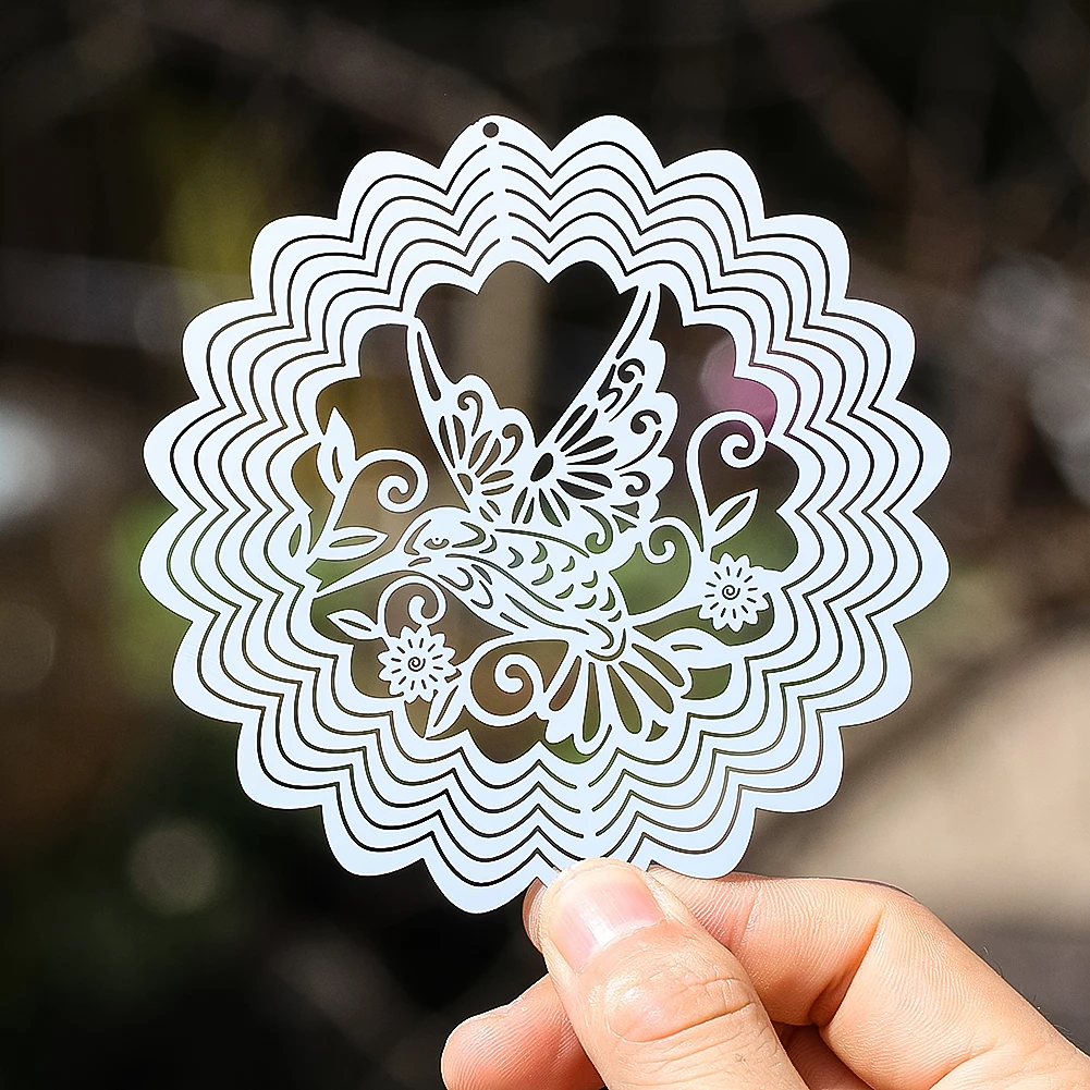The wind spinner is strong reflective and shows a pulsing, magical, three-dimensional effect, it will even gleam at night when only a little bit of light is available.