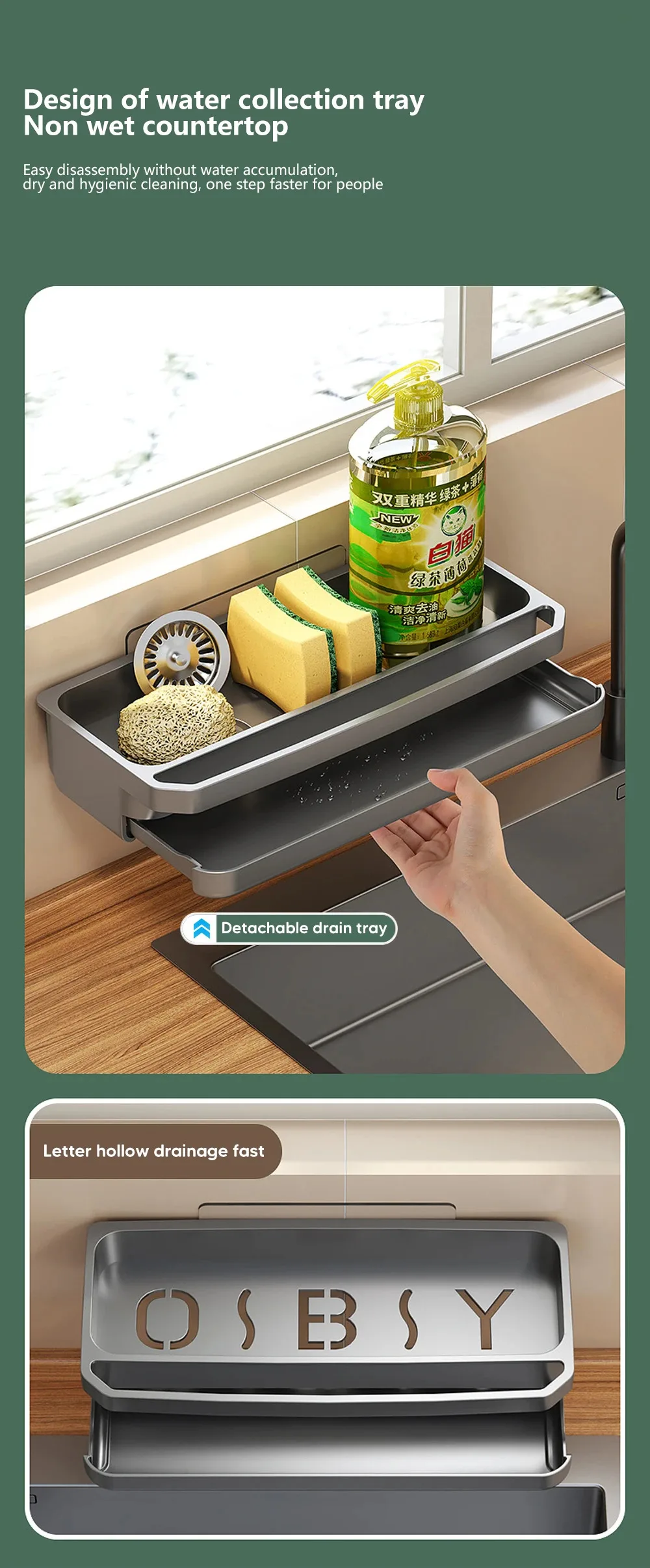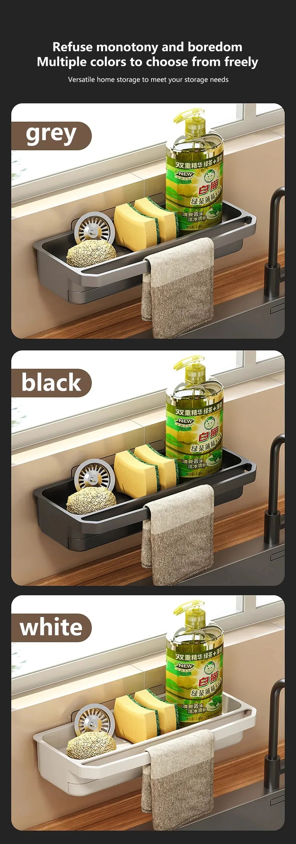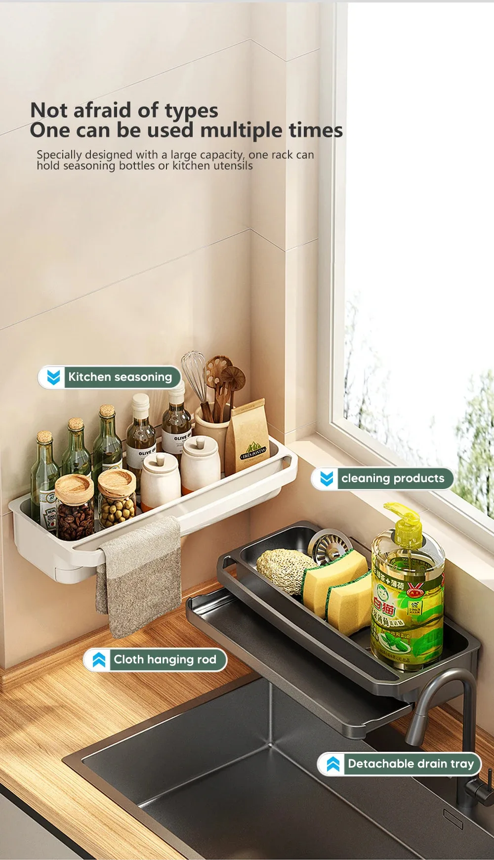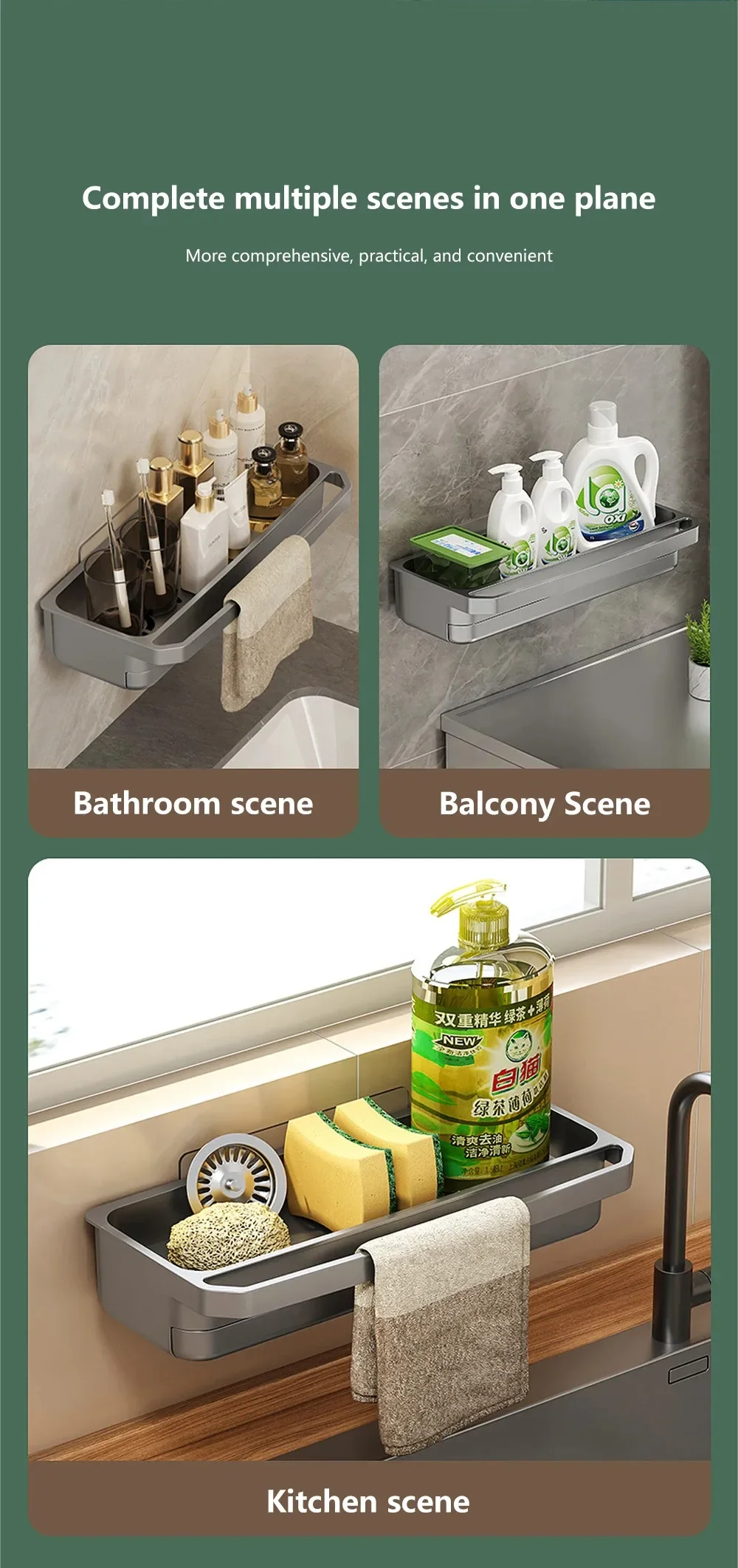 The sink shelf can effectively utilize the space around the sink, increase the storage space in the kitchen, and make your kitchen cleaner and more organized.