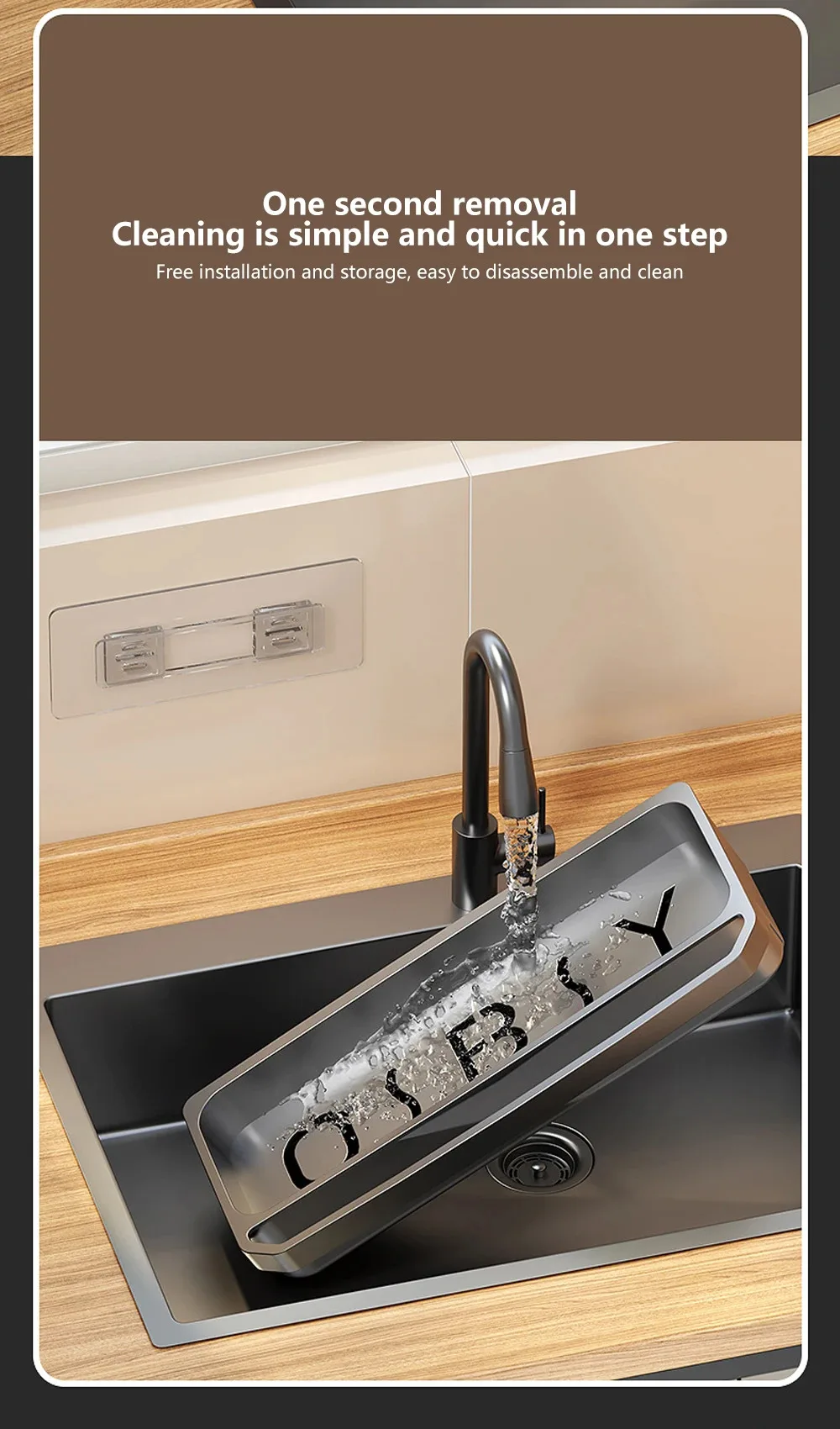 The sink shelf adopts an anti slip design, which can be firmly fixed at the edge of the sink to prevent the shelf from sliding and collapsing, ensuring the safety of your items.