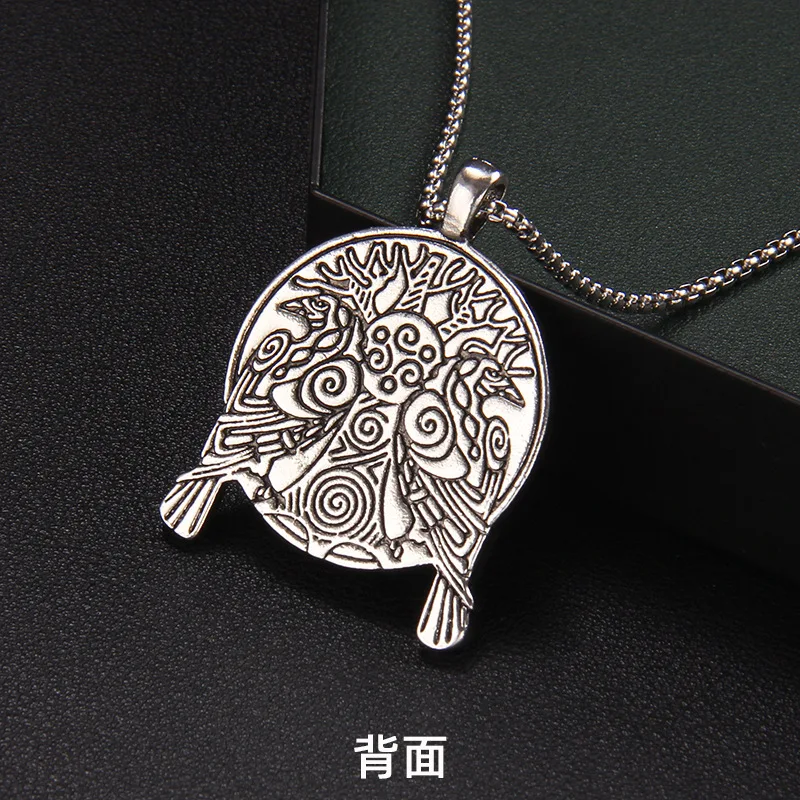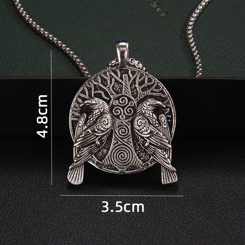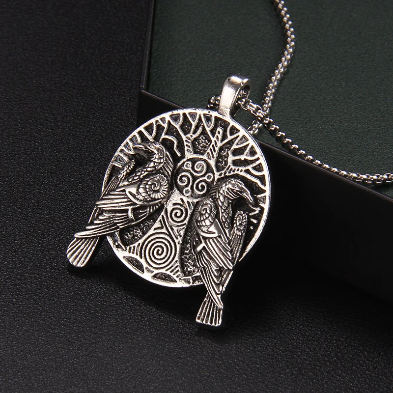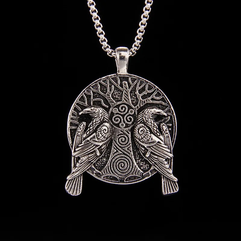 Nordic Mythology Domineering Retro Hip-Hop Viking Double Crow Personality Necklace Men's Trend Retro Eagle Versatile Pendant
