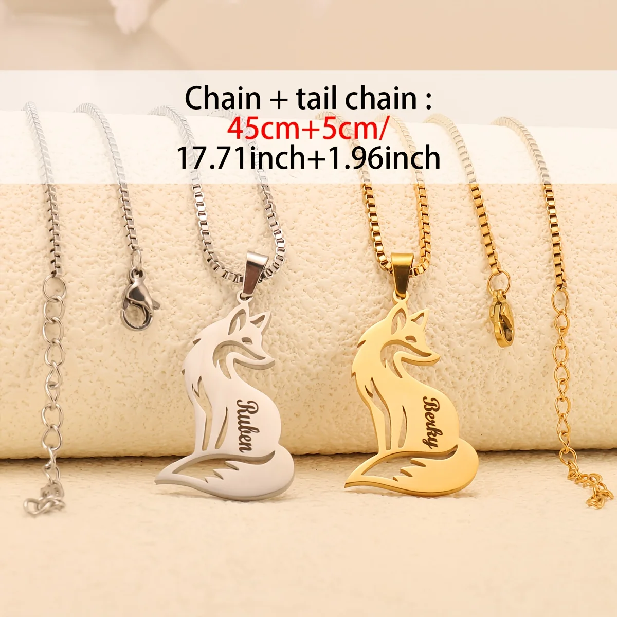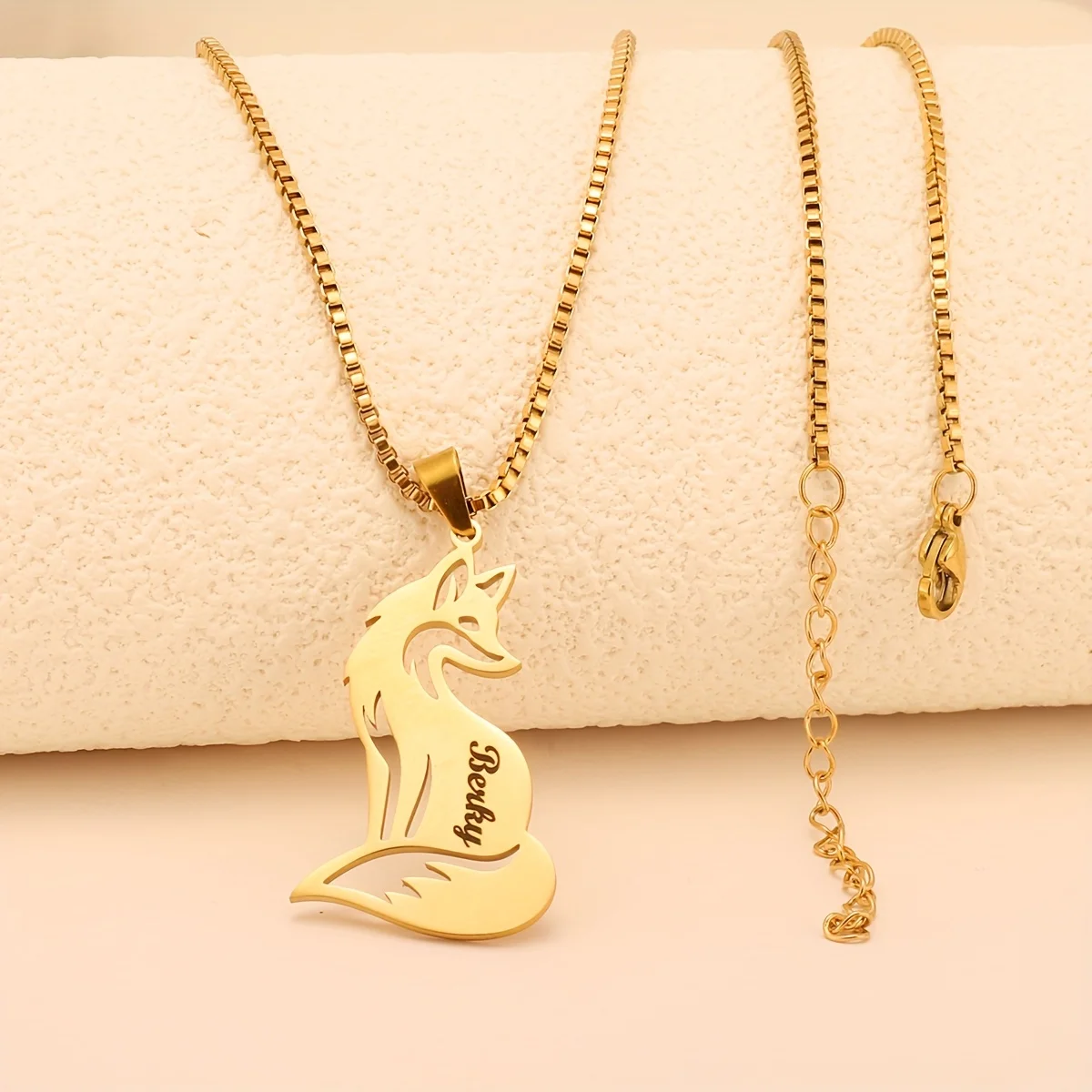 Personalized Fox Pendant Necklace with Customized Name, Romantic Birthday Gift for Daughter/Girlfriend/Wife, 18K Gold Plated