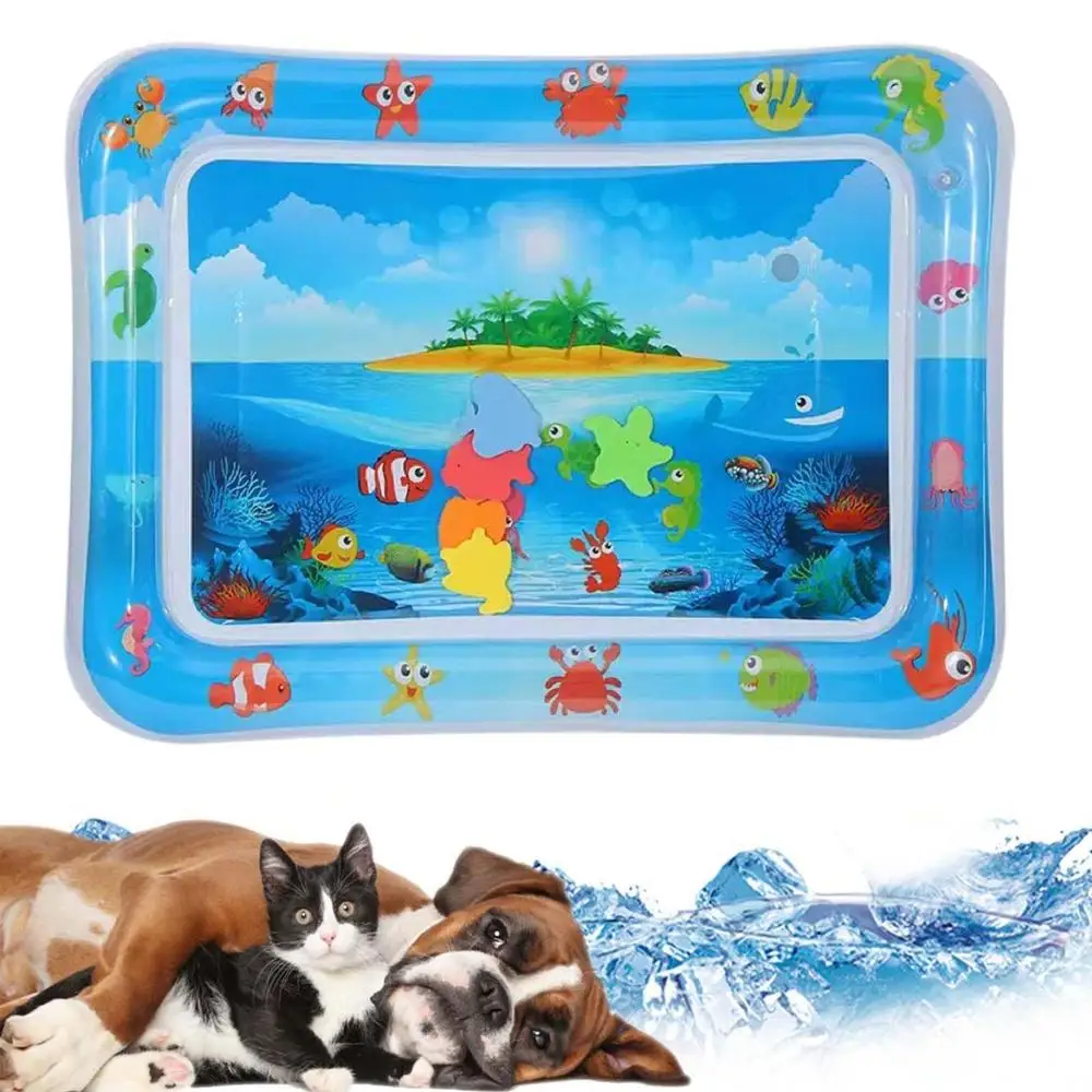 Pet Water Play Mat Water Sensory Pad Thickened Water Sensory Playmat with Fish for Pet Play Water Sensory Pad for Interactive