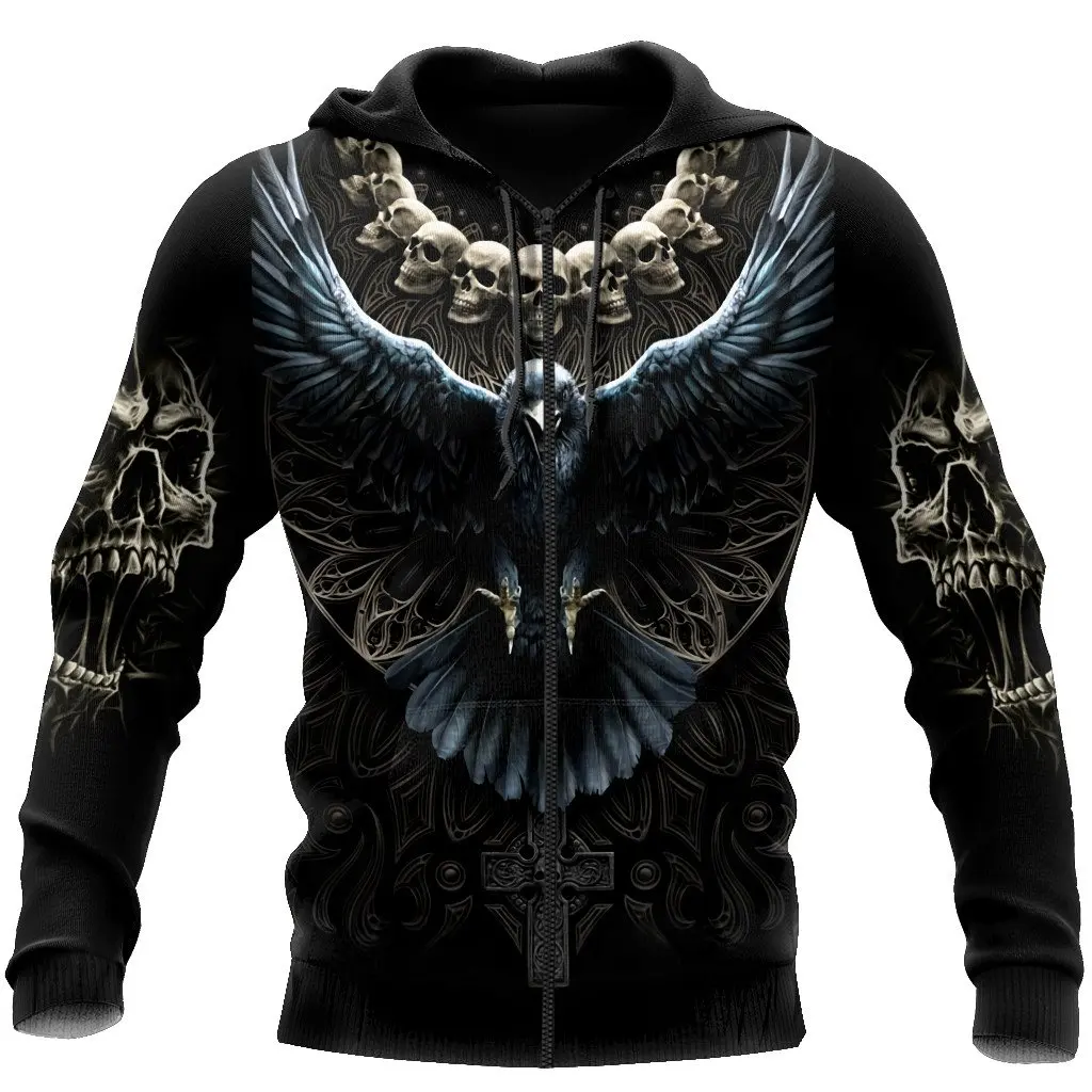 Raven Skull Pattern 3D All Over Printed Mens autumn Hoodie Harajuku Unisex Casual Pullover Streetwear Jacket Tracksuits DK216