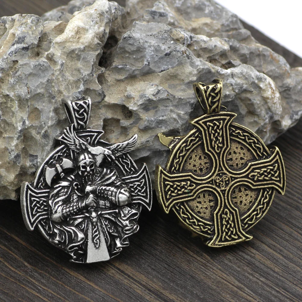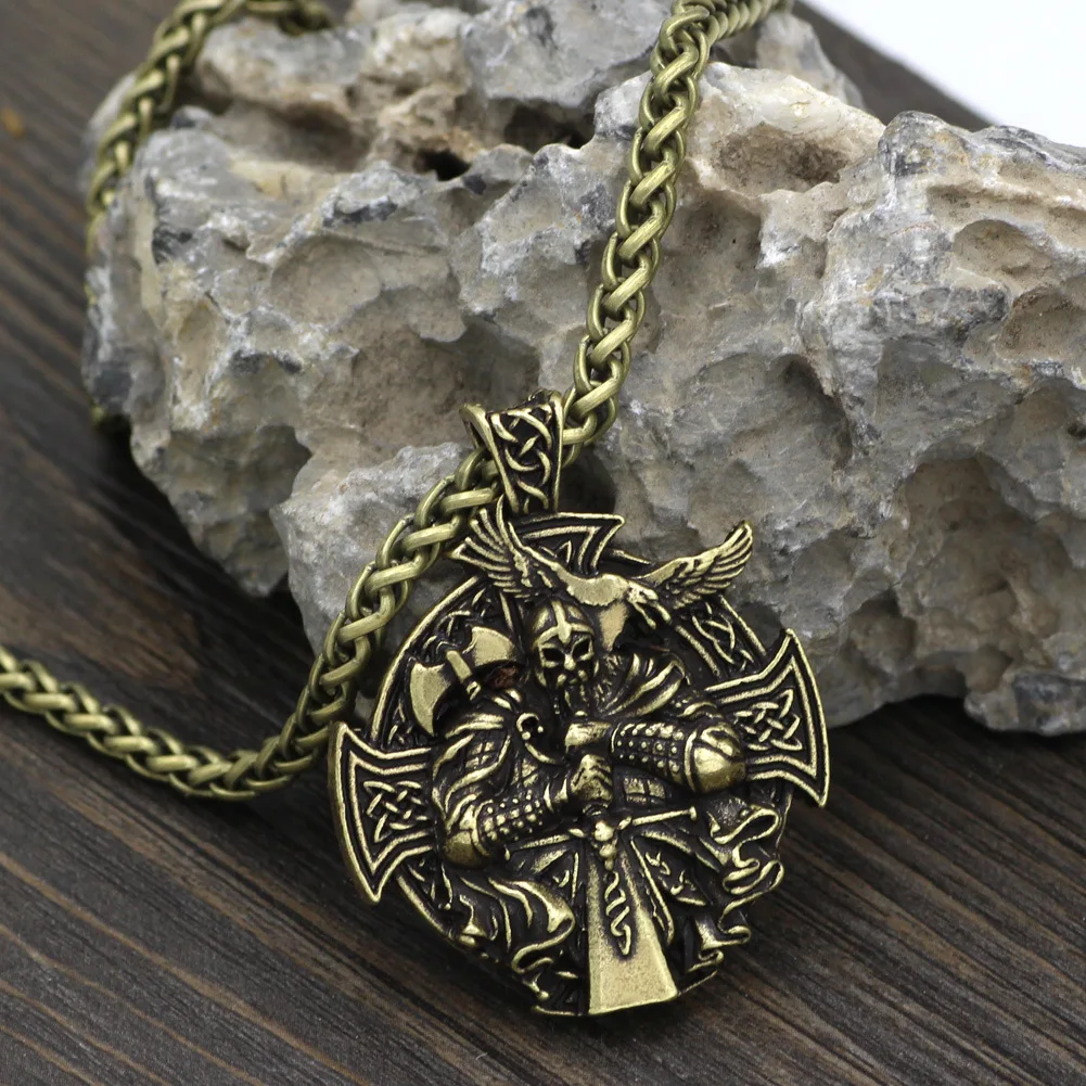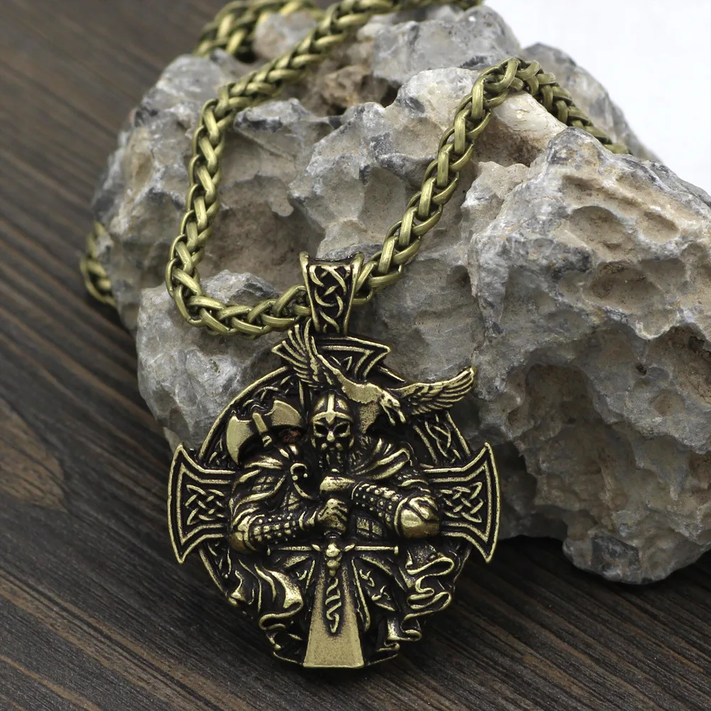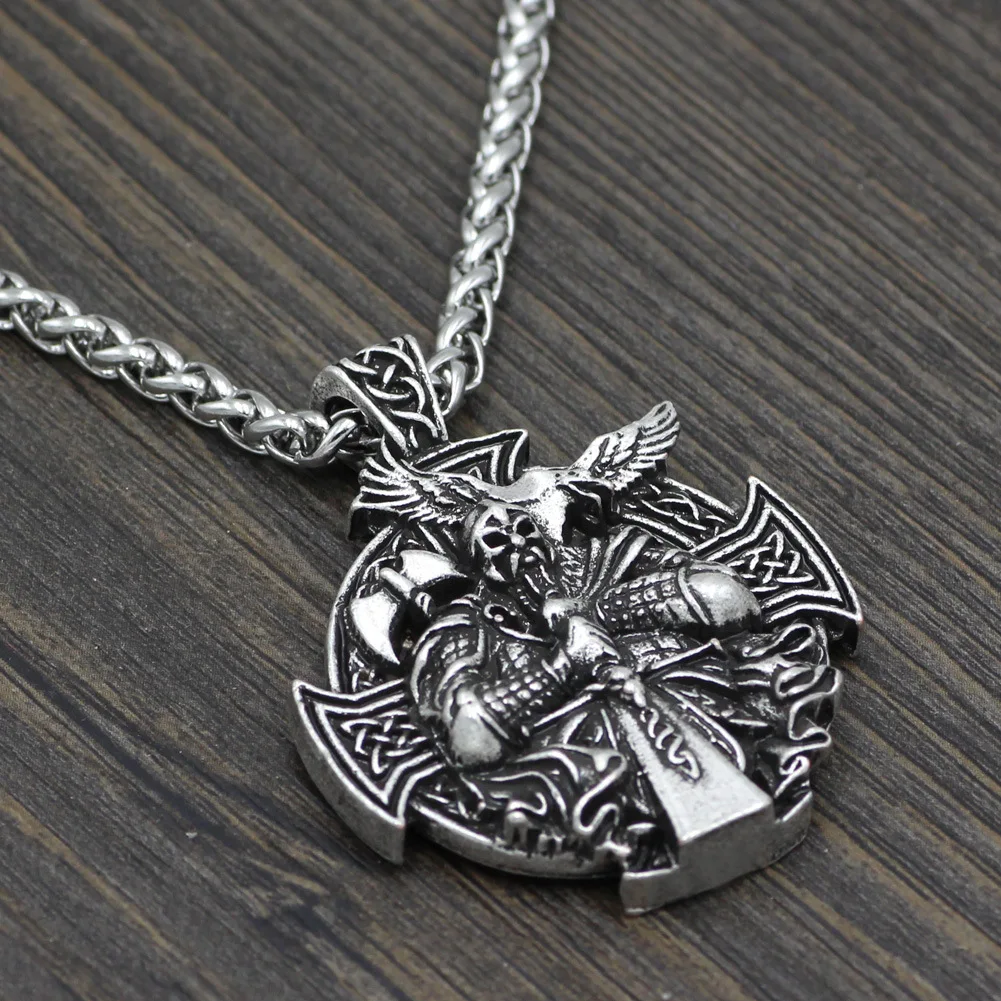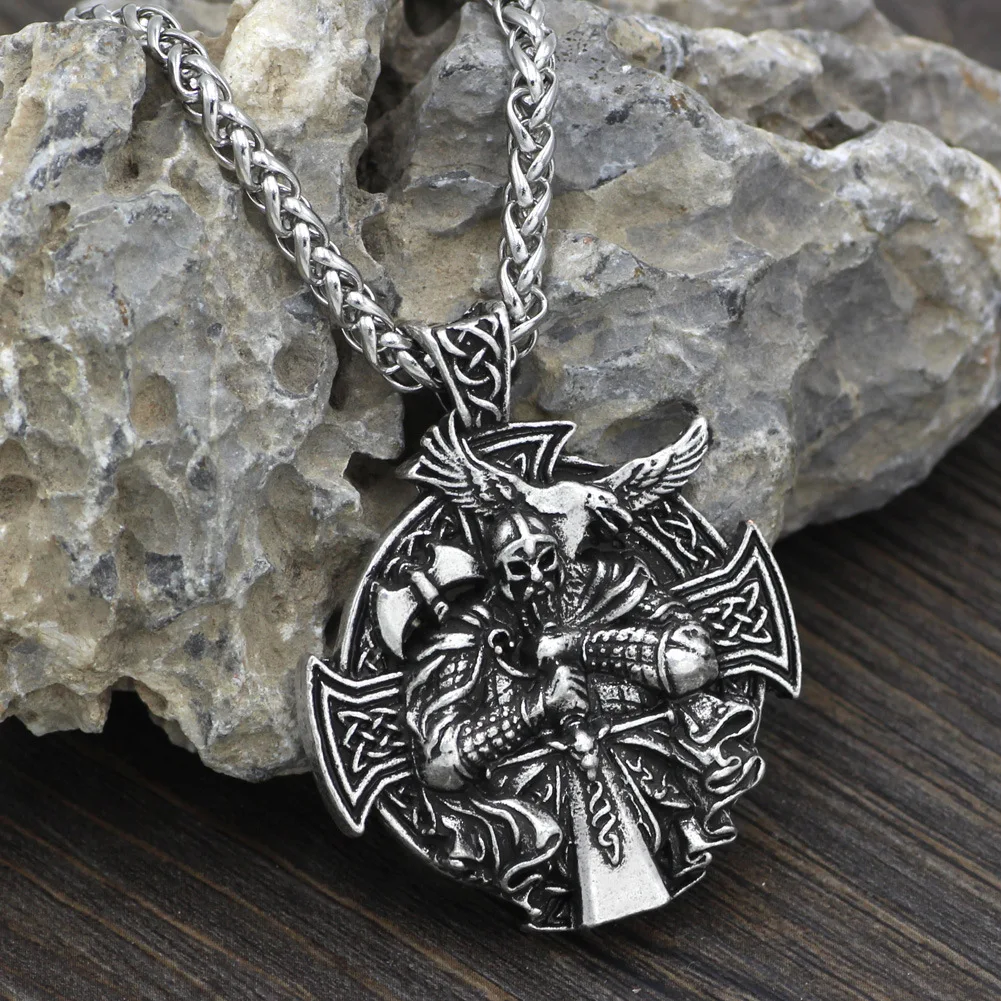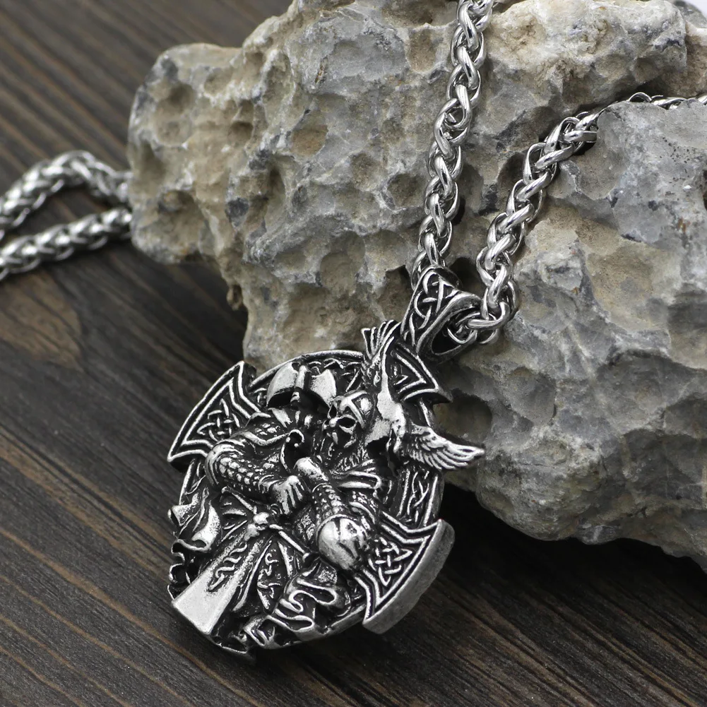 Retro Viking Myth Odin Cross Crow Pendant Necklace Men's Necklace Fashion Metal Thor's Hammer Religious Accessorie Party Jewelry