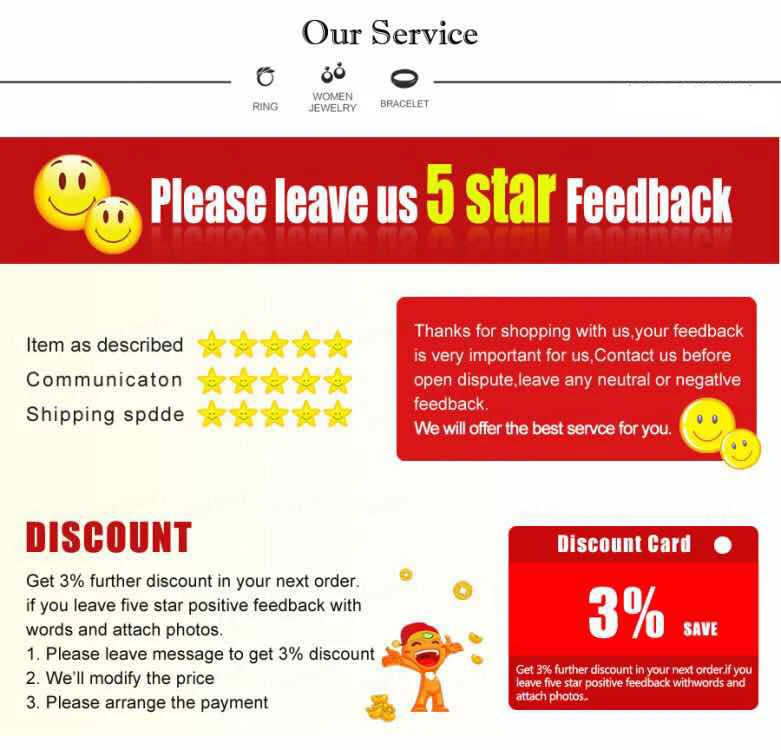 3.If you are satisfied with the products,happy with the deal,please give us the positive feedback,it is very important to us,thanks a lot!