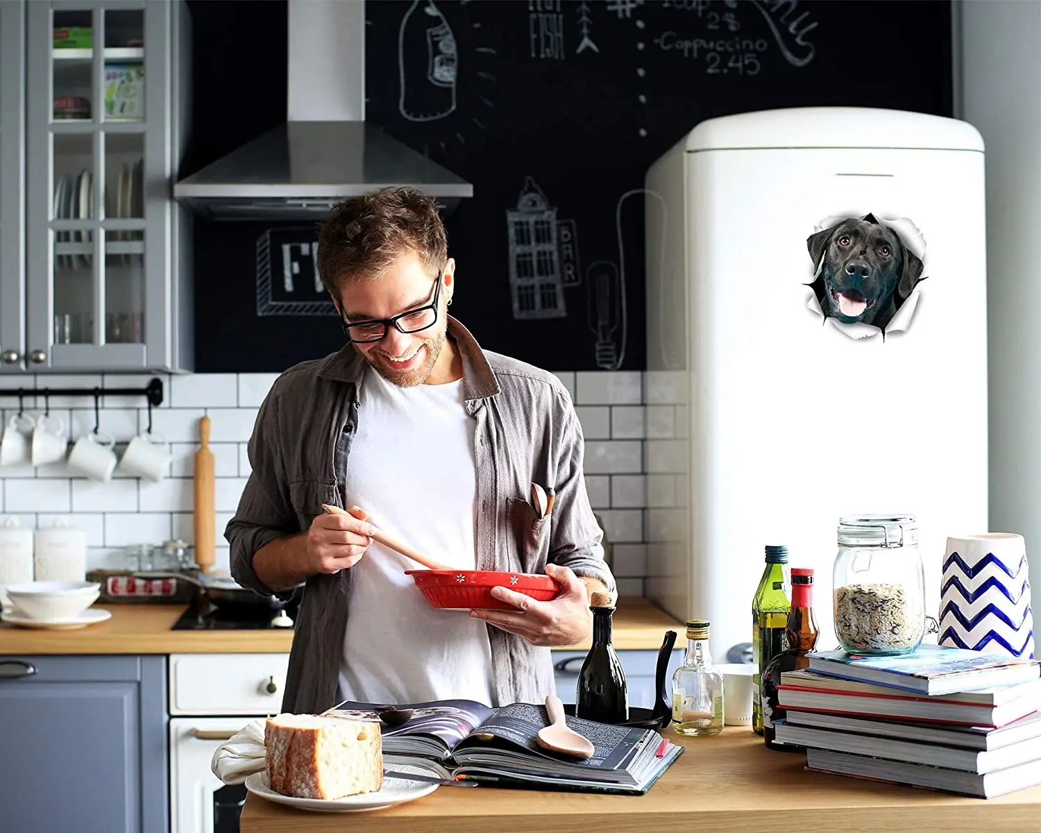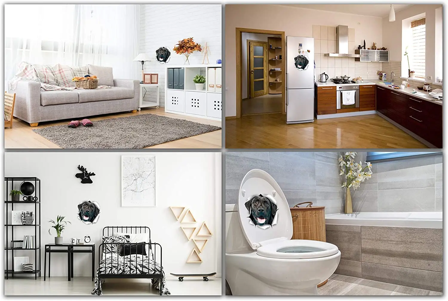 Three Ratels 1069 3D Cute Black Labrador Wall Stickers Window Room Decorations Bathroom Toilet Seat Decor Kitchen Accessories
